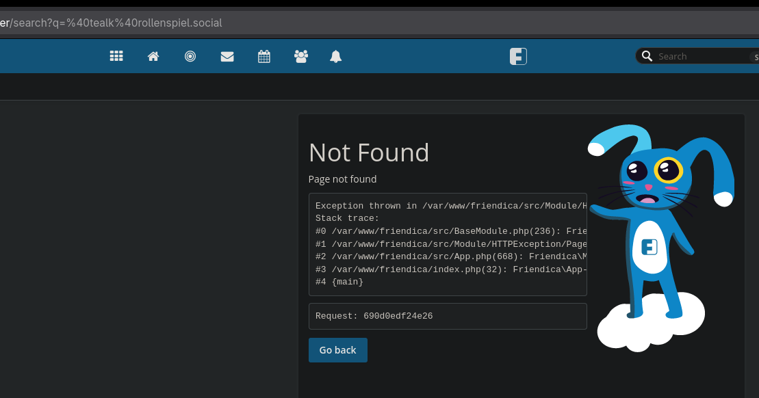 Als Antwort auf Tealk • •Hello, has anyone seen this problem before? When I start a search, I get a NotFound.